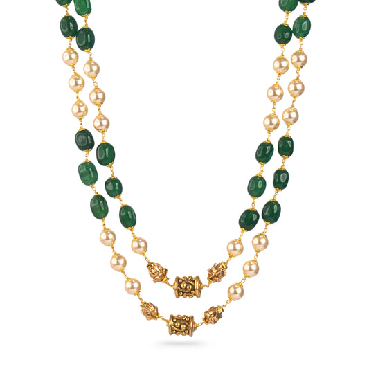 Green Beads & Pearl Two-Layer Necklace – Kattu Theega Karigari
