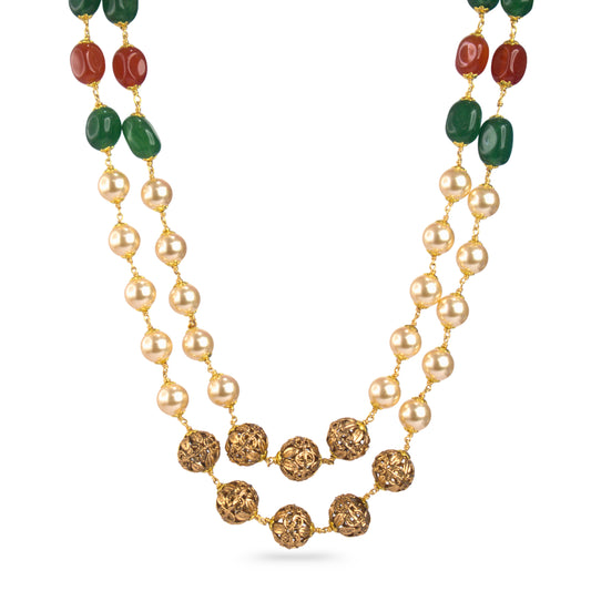 Multi-Colour Beads & Pearl Two-Layer Necklace – Kattu Theega Karigari