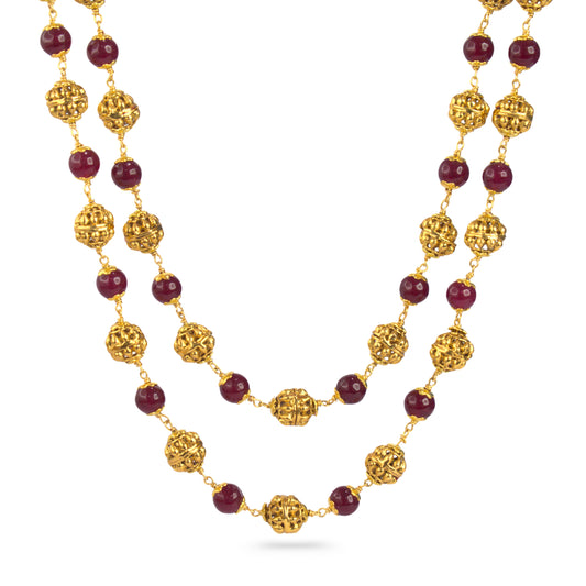 Maroon Beads & Gold-Tone Two-Layer Necklace – Kattu Theega Karigari