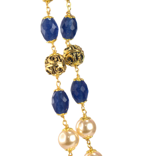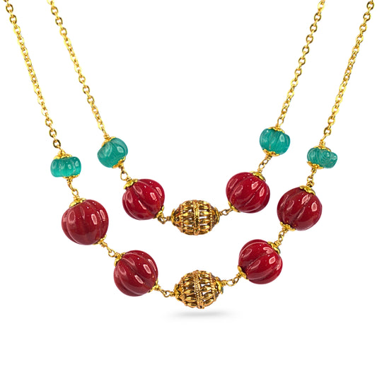 Red & Blue Pumpkin Beads Two-Layer Necklace – Kattu Theega Karigari