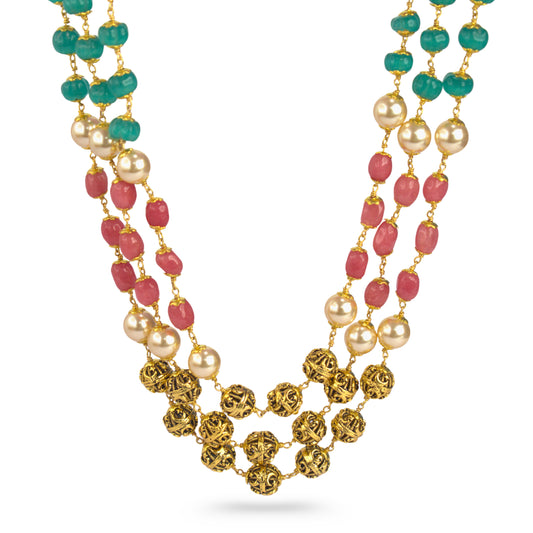 Multi-Colour Beads & Pearl Two-Layer Necklace – Kattu Theega Karigari