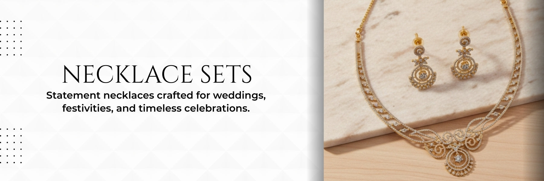 Our designs include traditional temple-inspired necklaces, CZ and AD statement pieces, handcrafted bead necklaces, gemstone strands, and contemporary silhouettes that blend heritage with modern aesthetics. Each necklace is crafted with attention to detail, ensuring comfort, durability, and timeless appeal.