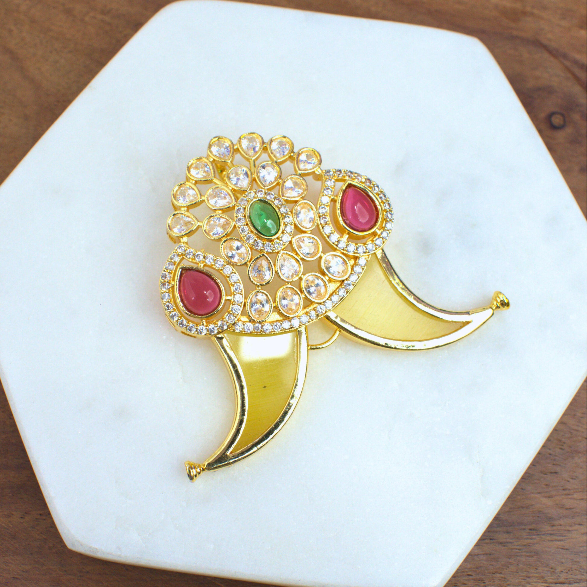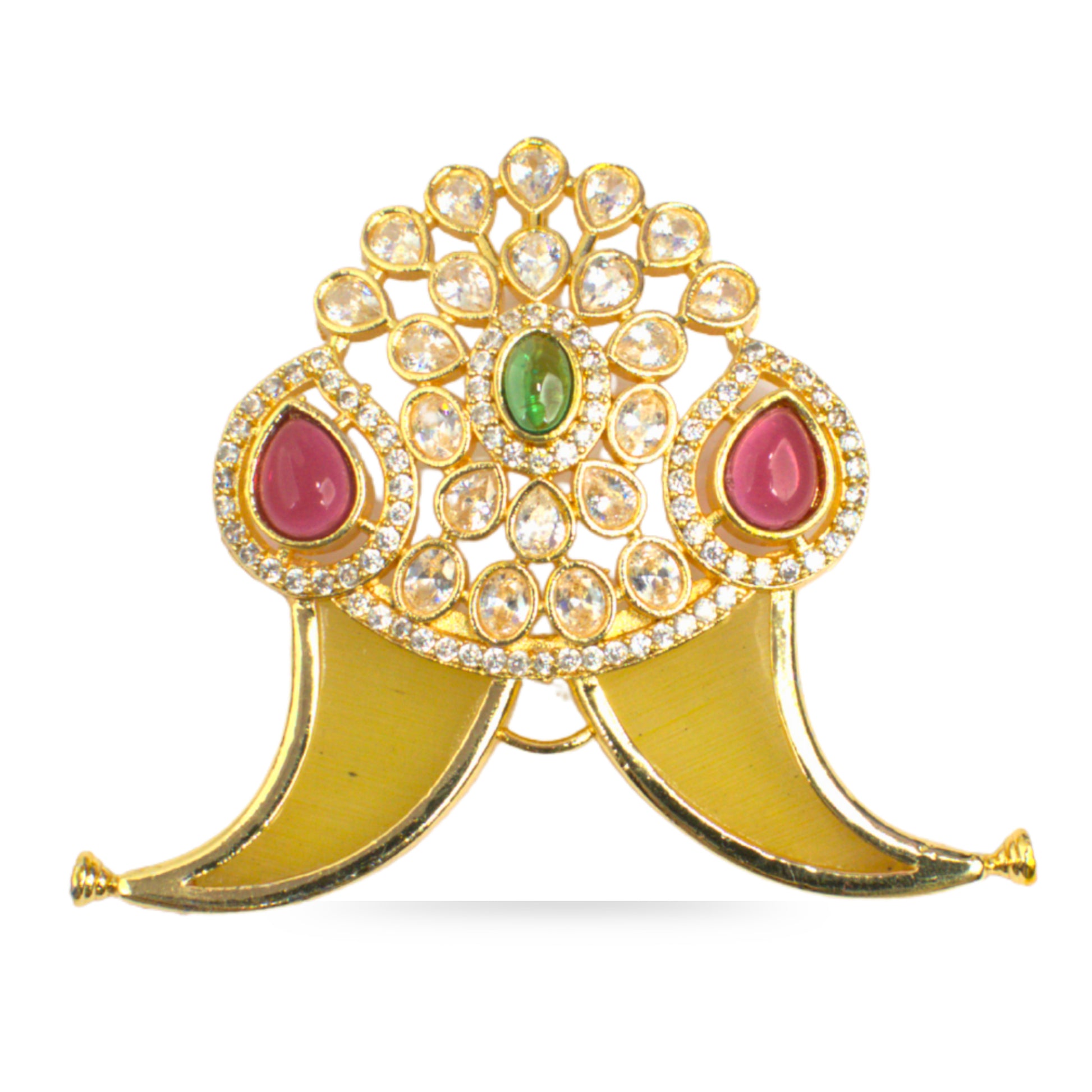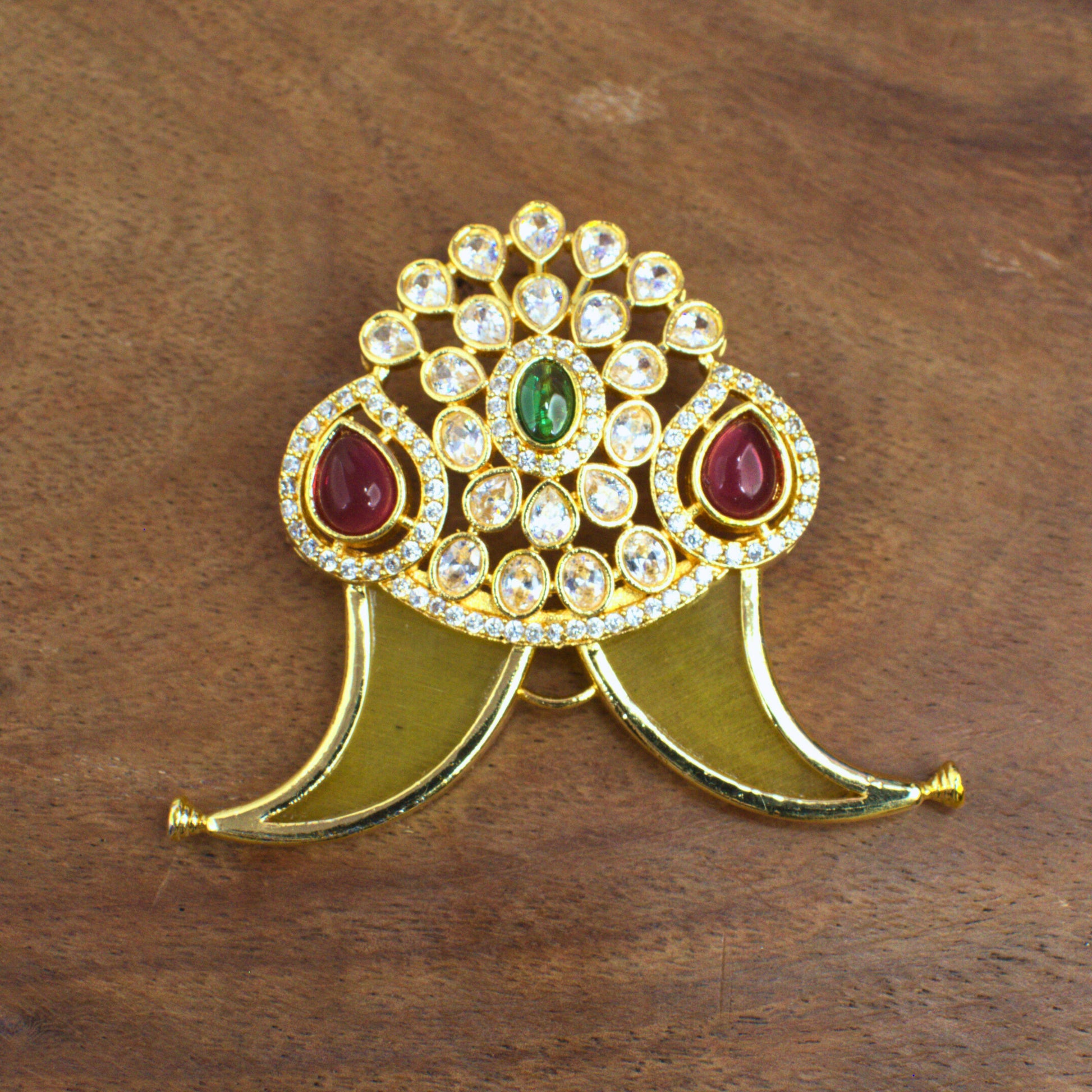 Nakshi CZ Temple Pendant with Curved Vanki Motif & Ruby-Emerald Accents