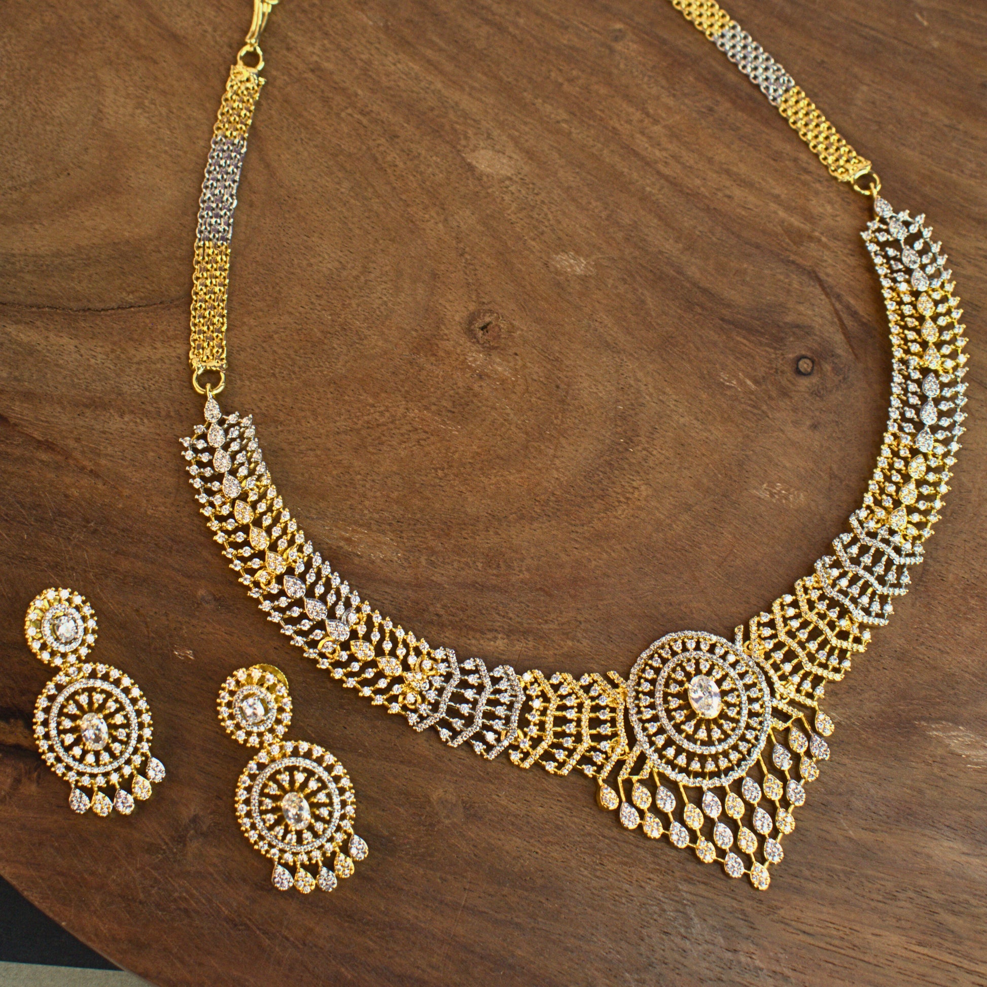 Udbhava Premium Dual Tone CZ Necklace Set with Earrings