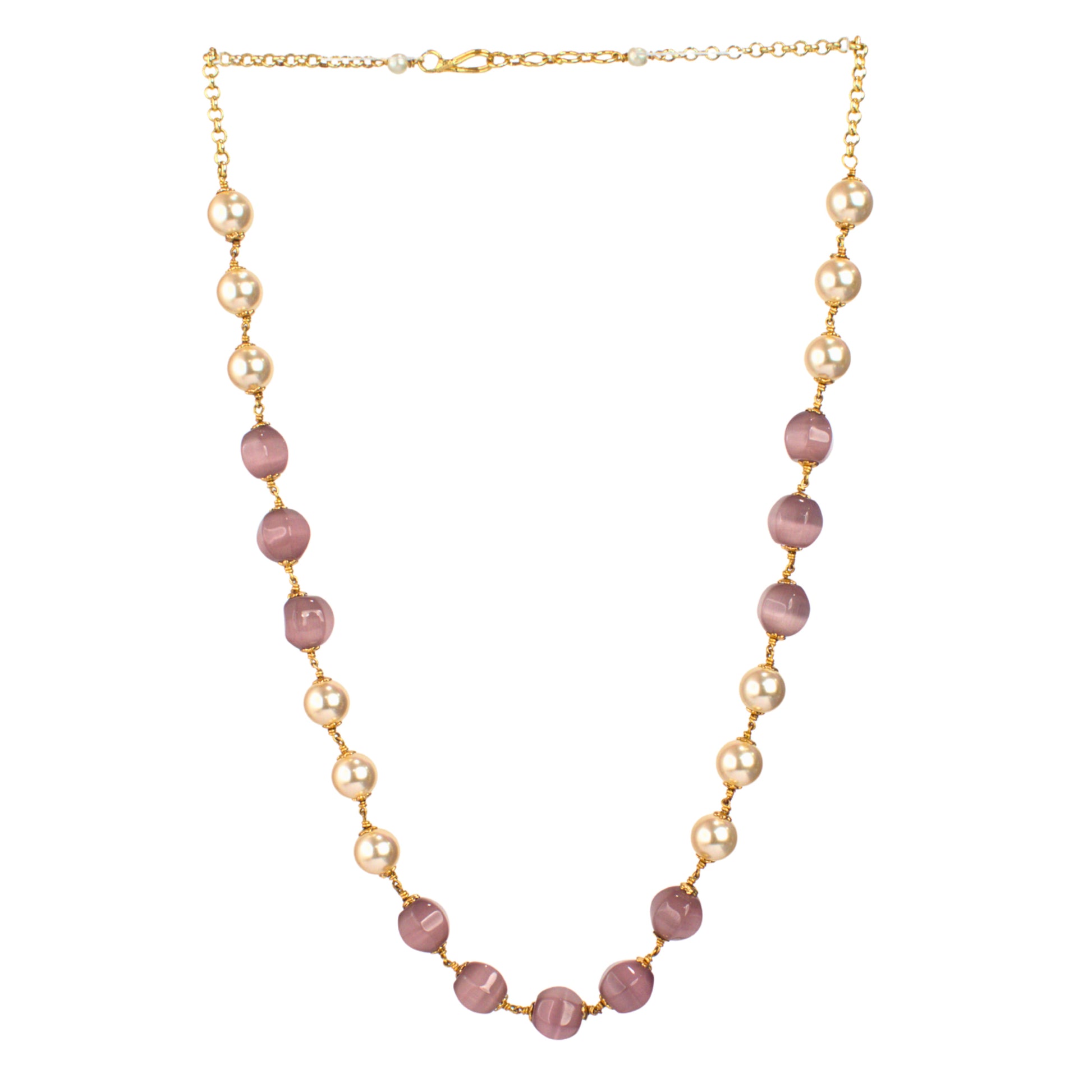 Udbhava Handcrafted Kattu Theega Necklace with Monalisa Beads & Imitation Pearls